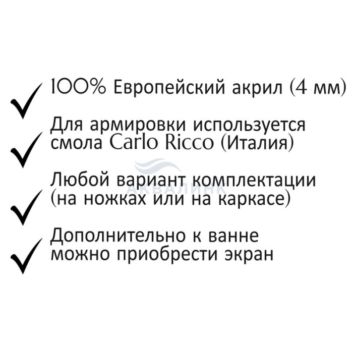 Ванна, отдельно приобретаются стальные ножки или жесткий стальной каркас.