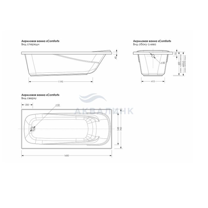Ванна акриловая Метакам Comfort 160х70 на каркасе