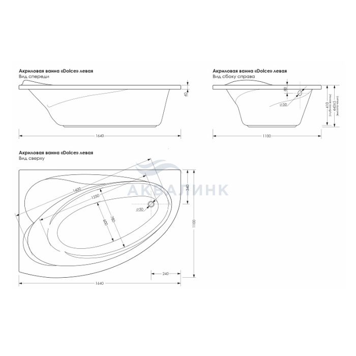 Ванна акриловая Метакам Dolce 164х110 правая на каркасе