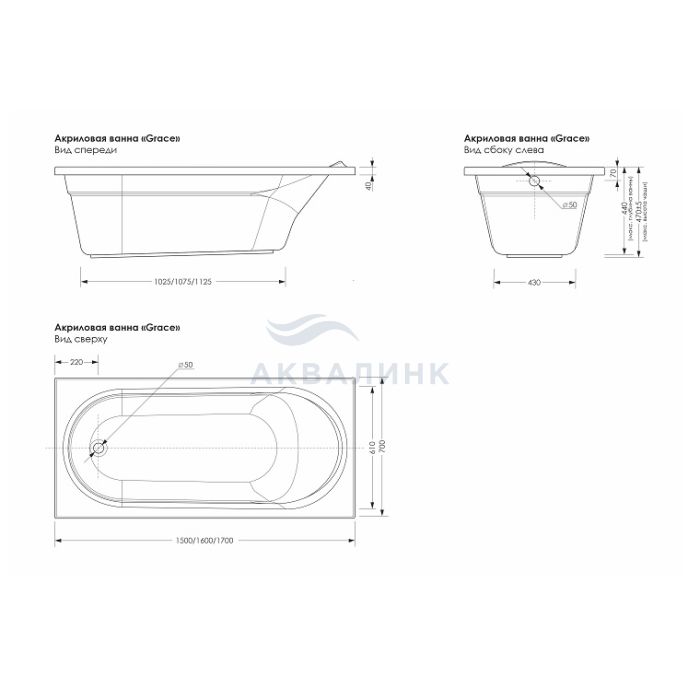 Ванна акриловая Метакам Grace 160х70 на каркасе