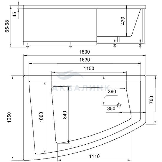 Ванна акриловая с фронтальной панелью Акватек Оракул