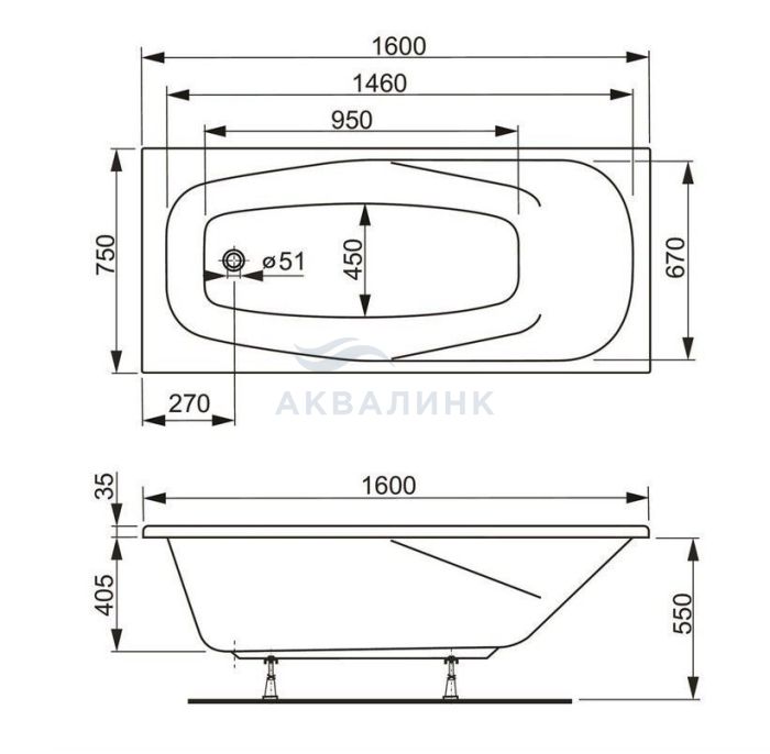 Ванна акриловая VAGNERPLAST ARONIA 160