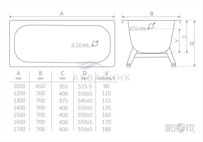 Ванна стальная ВИЗ эмалированная Antika 1400х700х400 А-40001
