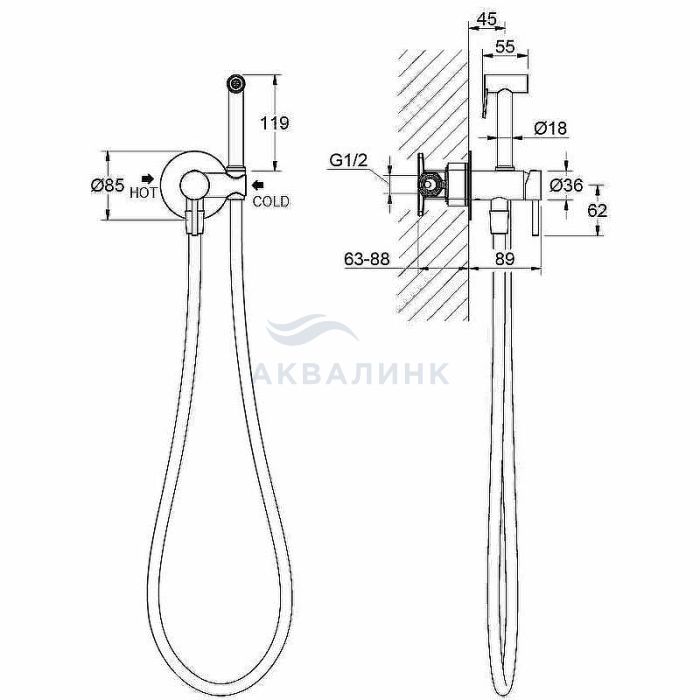 Смеситель для биде Aquatek Европа AQ1021MB с гигиеническим душем