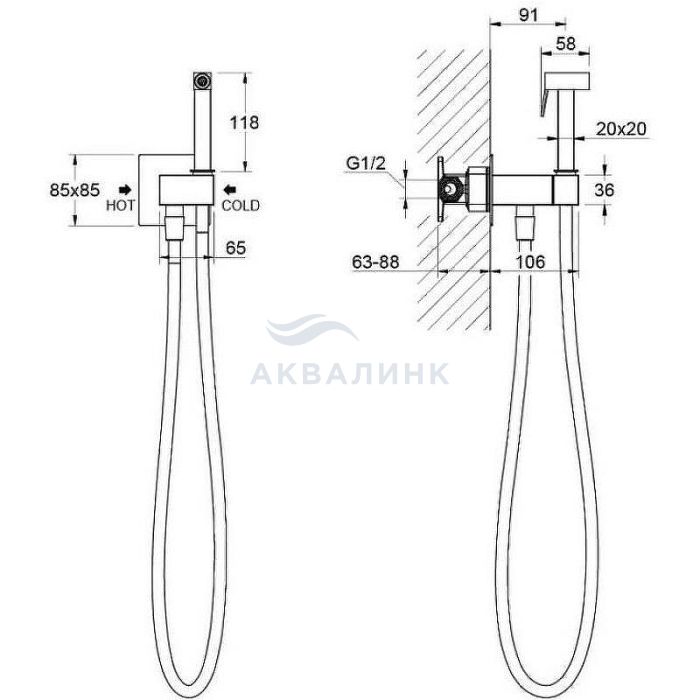 Смеситель для биде Aquatek Лира AQ1025MB с гигиеническим душем, встраиваемый, хром