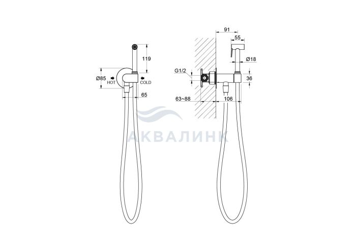 Смеситель для биде Aquatek Оберон AQ1024CR с гигиеническим душем