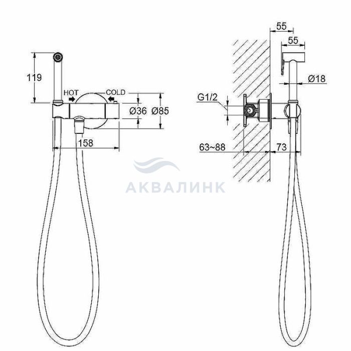 Смеситель для биде Aquatek Оберон AQ1027MB с термостатом, с гигиеническим душем