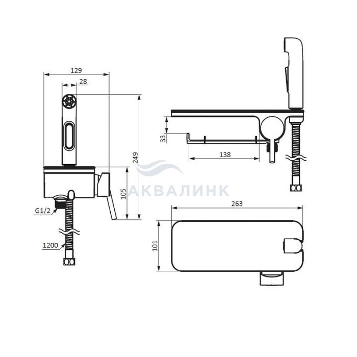 Смеситель для биде Damixa Origin Bit 773500300/773500301 с полкой, с лейкой, черный