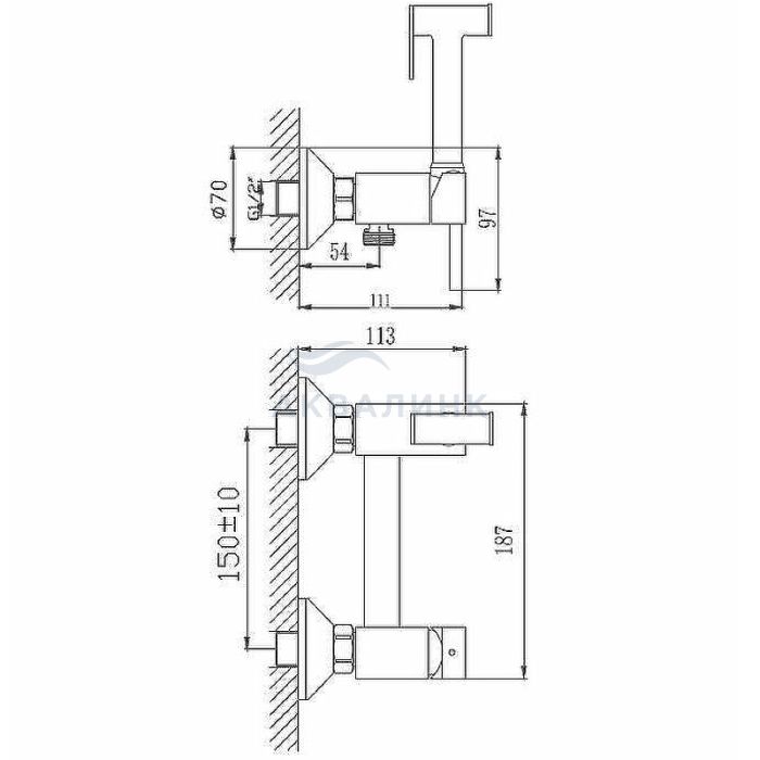 Смеситель для биде Haiba HB5510 настенный, с гигиеническим душем