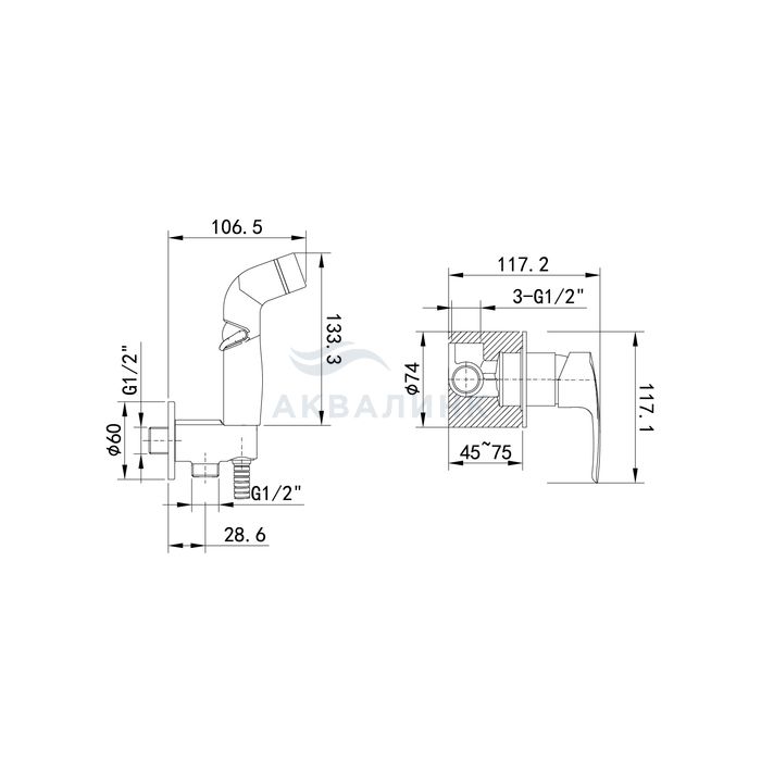 Смеситель для биде IDDIS Рэй (Ray) встраиваемый, раздельный, хром, RAYSBR2i08
