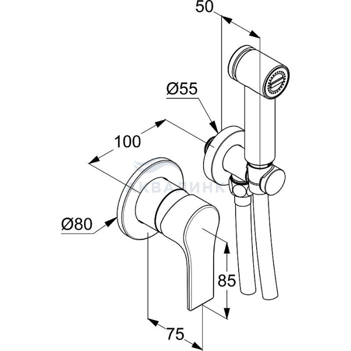 Смеситель для биде KLUDI Zenta SL 489983965 с гигиеническим душем