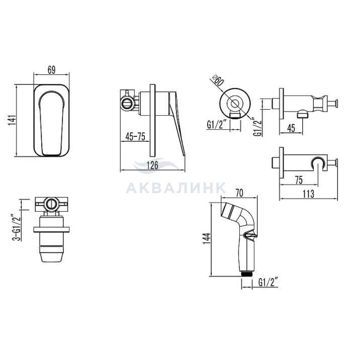 Смеситель для биде LEMARK Bronx встраиваемый, с лейкой, графит LM3719GM