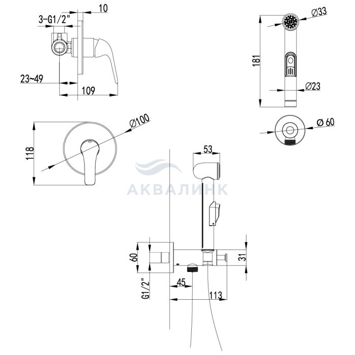 Смеситель для биде LEMARK Plus Advance встраиваемый, с лейкой, хром LM1219C
