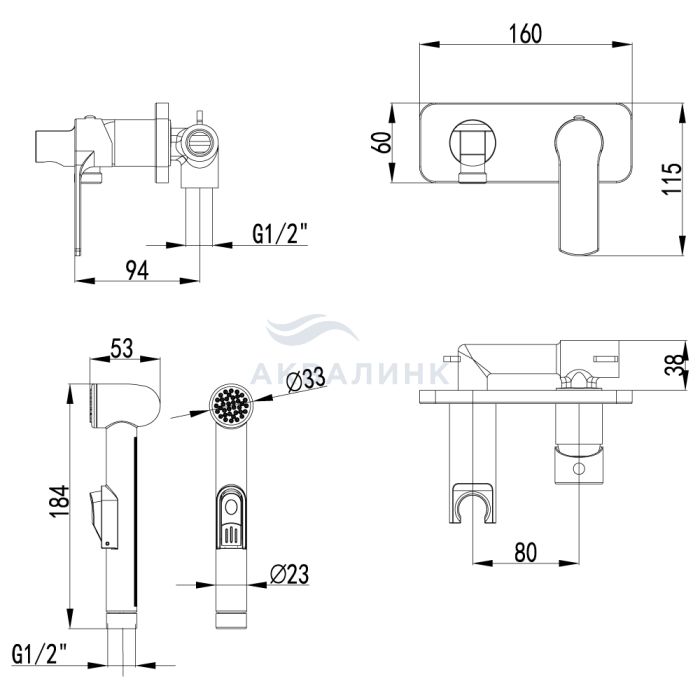 Смеситель для биде LEMARK Plus Grace встраиваемый, с лейкой, хром LM1519C