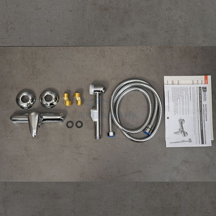 Комплектация: Керамический картридж 25 мм Аксессуары в комплекте: лейка для биде с нажимным механизмом , шланг 1,5 м, настенное крепление для лейки Металлическая рукоятка