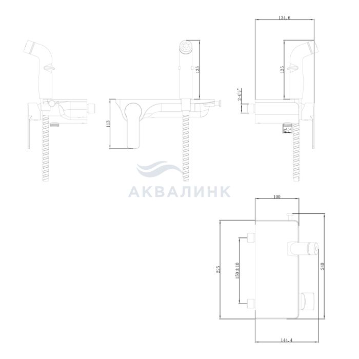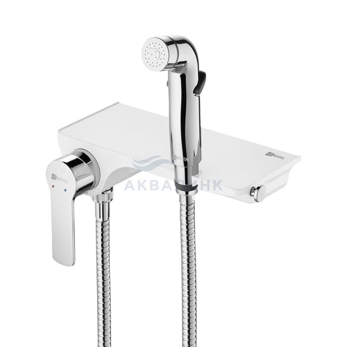 Смеситель для биде LEMARK Solo настенный, с лейкой и полкой, белый/хром LM7168CW