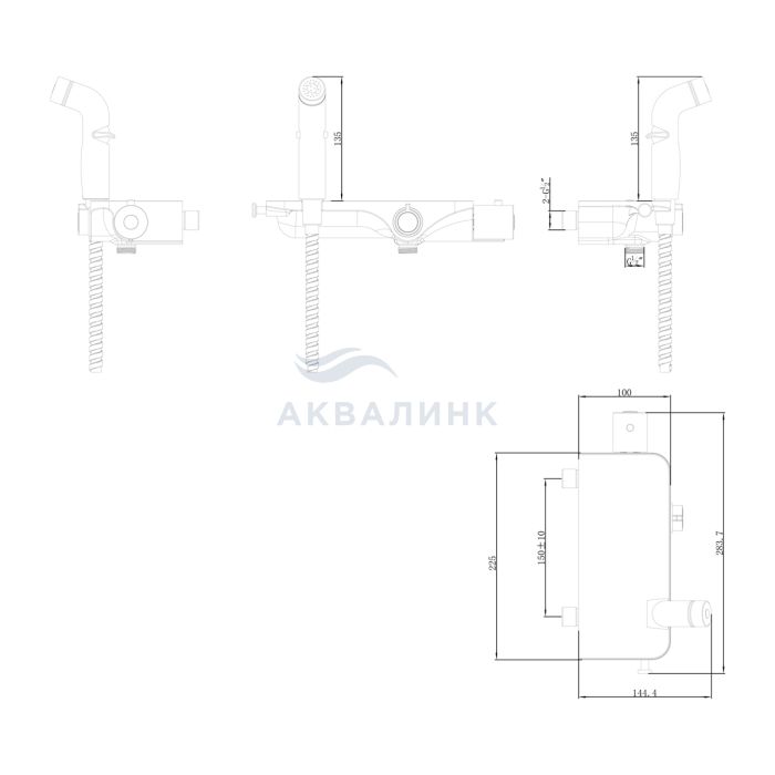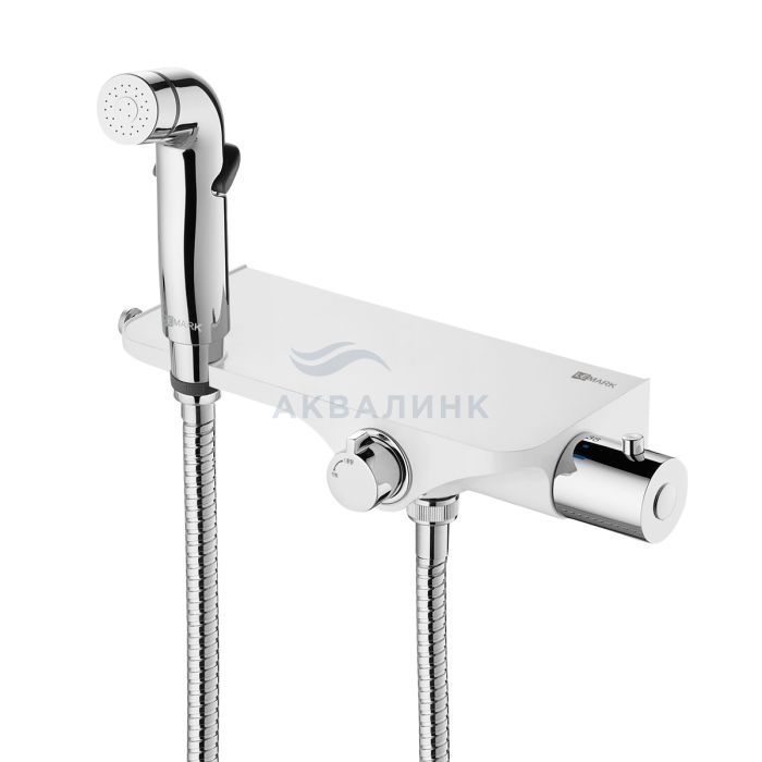 Смеситель для биде LEMARK Solo настенный, с термостатом, с лейкой и полкой, белый/хром LM7169CW