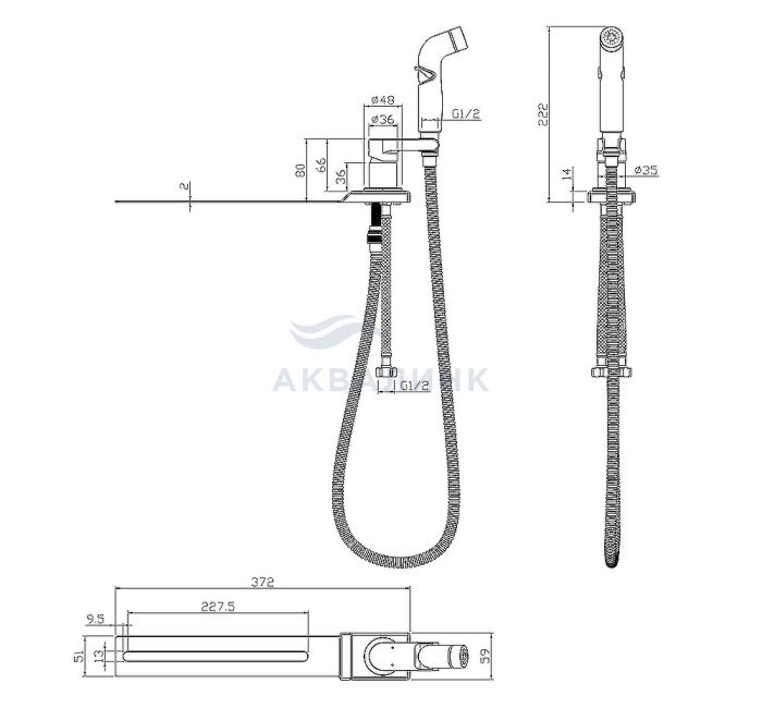 Смеситель для биде LEMARK Solo с лейкой, установка на унитаз, белый/хром LM7170CW