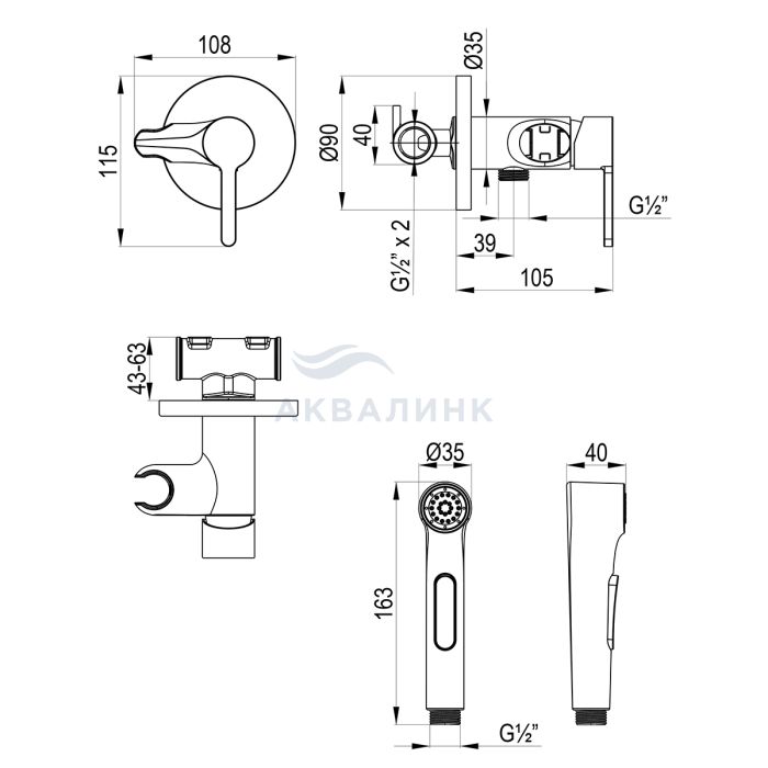 Смеситель для биде LEMARK Solo встраиваемый, с гигиеническим душем, хром LM7174C