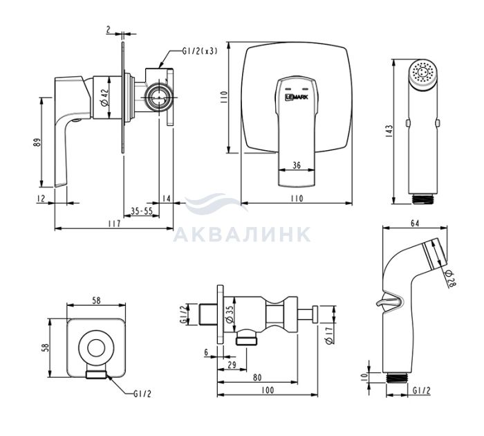 Смеситель для биде LEMARK Ursus встраиваемый, с лейкой, черный LM7219BL