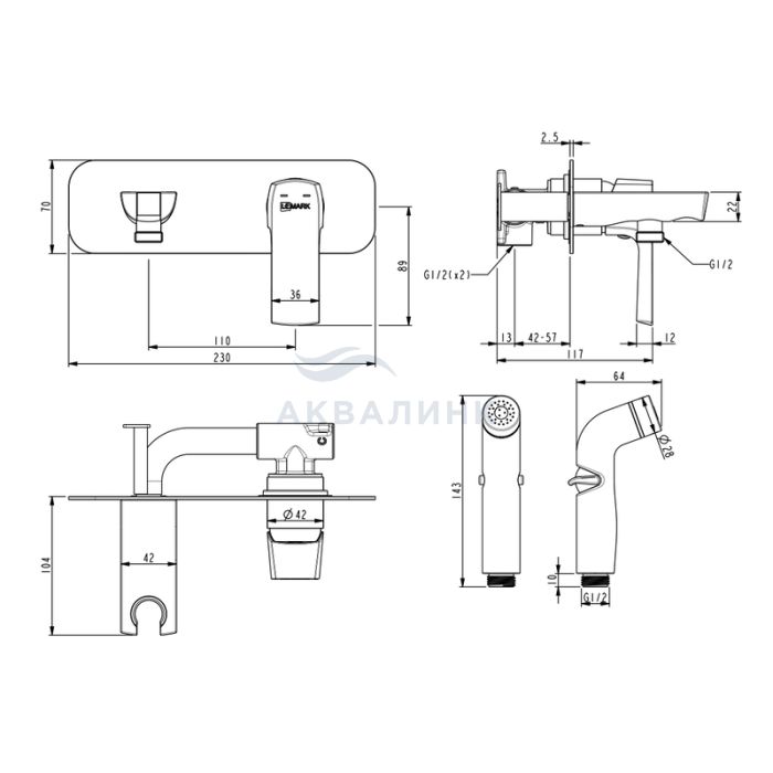 Смеситель для биде LEMARK Ursus встраиваемый, с лейкой, черный LM7220BL