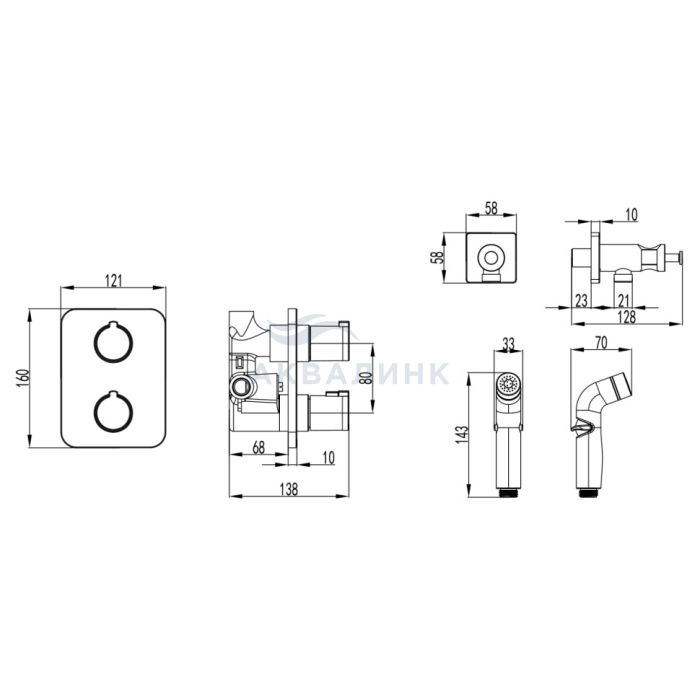 Смеситель для биде LEMARK Yeti встраиваемый, с термостатом, с лейкой, хром LM7820C