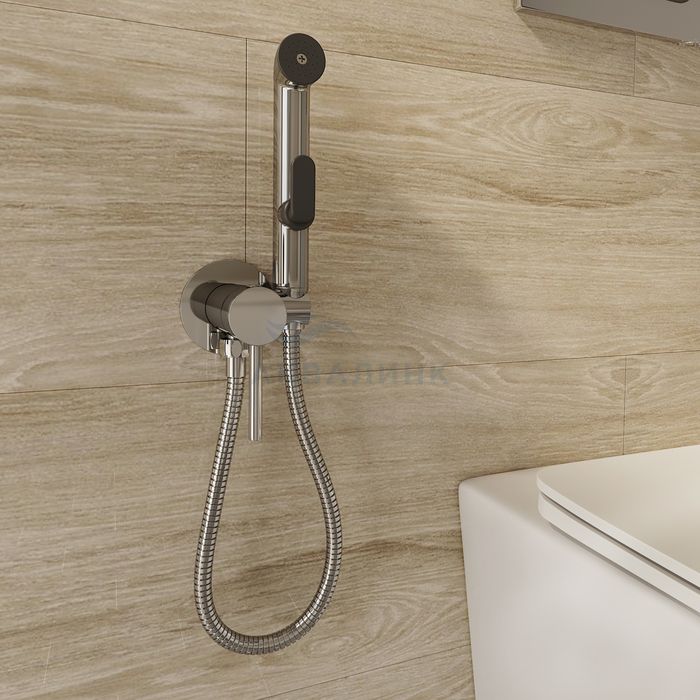 001SBR0M08, Встраиваемый смеситель с гигиеническим душем Коллекция смесителей Tidy – это современное готовое решение для гигиенического душа. Стильный дизайн, контрастное сочетание черных вставок и хромированного корпуса придают смесителю с гигиеническим душем актуальный внешний вид, а удобное рычажное управление, позволяет управлять им в одно движение. Легкость управления получится прочувствовать уже с первого прикосновения. Гигиеническая лейка из ABS-пластика и душевой шланг из ПВХ (1,2) в комплекте.