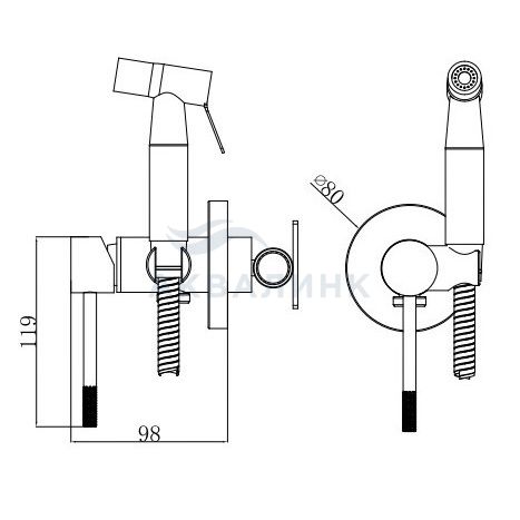 Смеситель для биде VODA Vessel Gold (Лайнер) встраиваемый, с гигиеническим душем, золото VSL01G