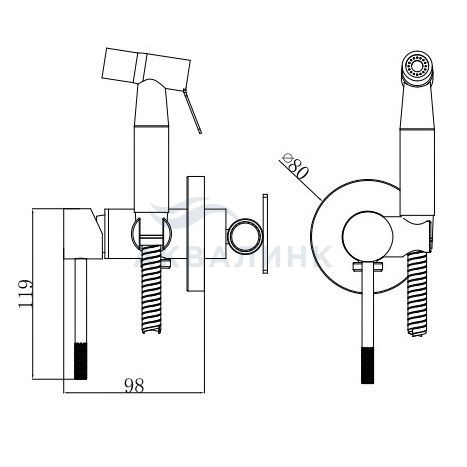 Смеситель для биде VODA Vessel Gun (Лайнер) Metal встраиваемый, с гигиеническим душем, темно-серый VSL01GM