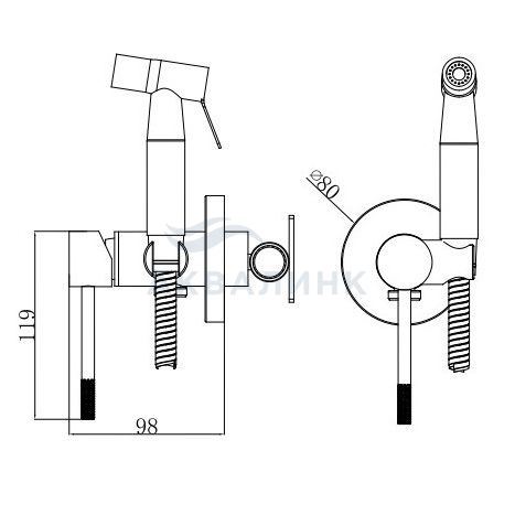 Смеситель для биде VODA Vessel (Лайнер) встраиваемый, с гигиеническим душем, сатин VSL01
