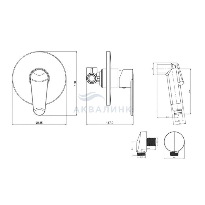 Смеситель для биде VODA встраиваемый, с гигиеническим душем, хром WF4in1