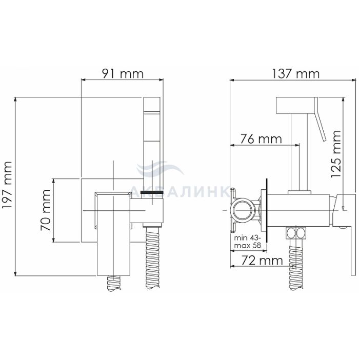 Смеситель для биде WasserKRAFT A71138 встриваемый, с гигиеническим лейкой