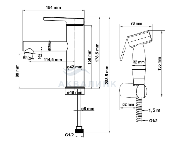 Смеситель для раковины Swedbe Diana (Диана) 1060B с гигиенической лейкой
