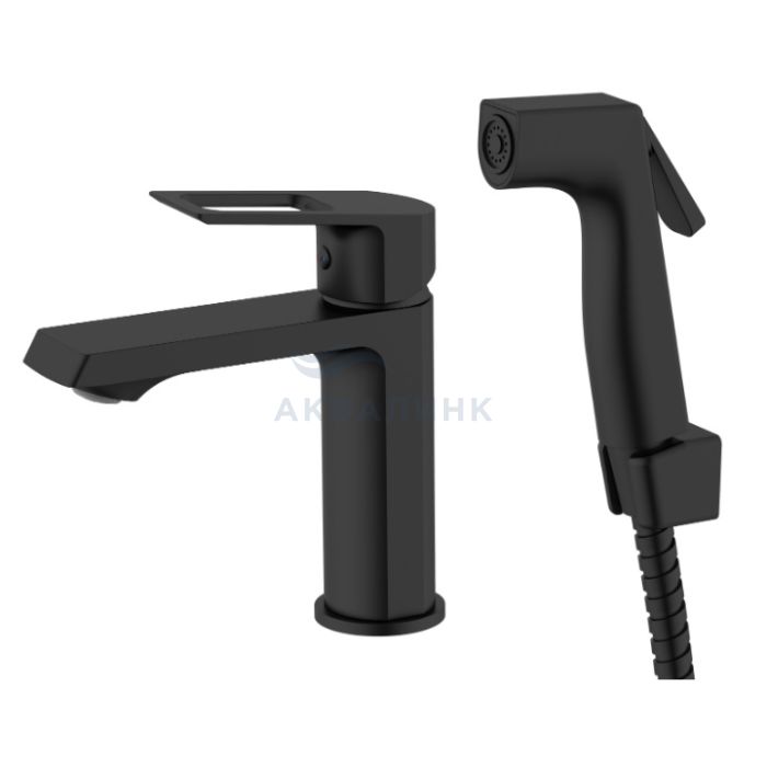 Смеситель для раковины VODA Surf (Сёрф) с гигиеническим душем, черный SF27HB