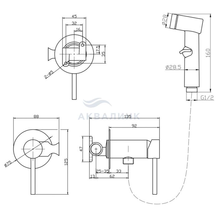 Смеситель для биде ESKO встраиваемый, с гигиеническим душем, хром SMH