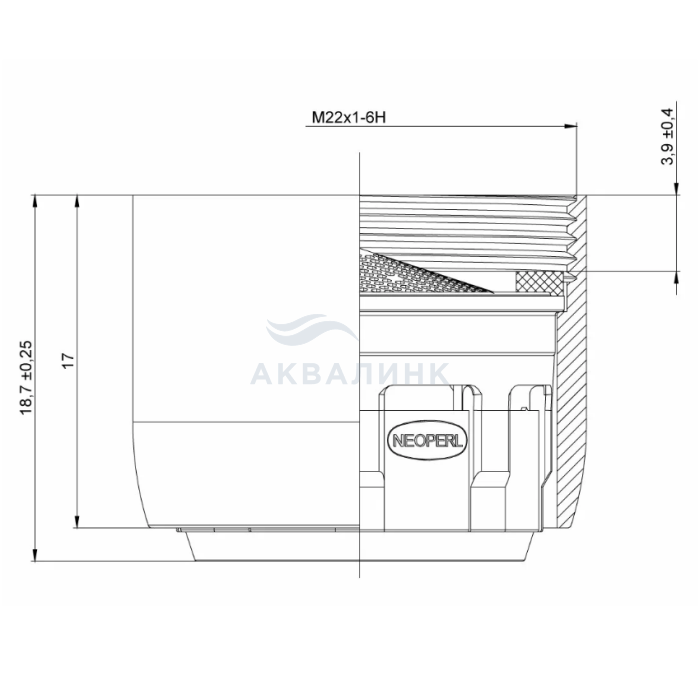 Аэратор Neoperl Cascade SLC M22, диаметр 22 мм, внешний, экономия расхода воды, функция самоочистки. NP12301ASLC-BL Аэратор NEOPERL CASCADE SLC M22 A, шт