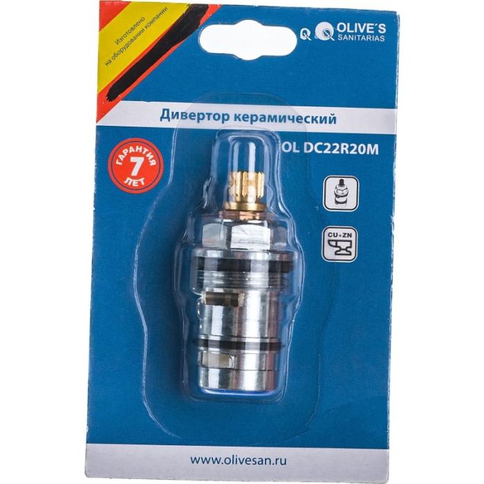 Керамический механизм дивертора обеспечивает долгую и надежную работу. Гарантированная работа дивертора в течение 500 000 циклов переключения (соответствует стандарту EN 817). Дивертор изготовлен из латуни с хромированным покрытием. Система подавления шума SILENT OLIVE’S гарантирует уровень шума менее 18 дБ. OLIVE’S предоставляет гарантию 7 лет на диверторы, картриджи и кран-буксы. Необходима установка фильтров грубой очистки воды. Характеристики: 20 шлицов Угол поворота: 90° Максимальное давление: 35 бар Максимальная температура: 95° Пропускная способность воды: 27,5 л/мин. (при рабочем давлении 3 бар) Дивертор изготовлен из латуни с хромированным покрытием. Упаковка: блистер Внимание! Данный дивертор подходит к следующим моделям смесителей OLIVE’S: 10221AN, 02211AV, 02221AV, 22221BR, 08221LR, 33221EV,16221PL, 11221PR, 14221SR.