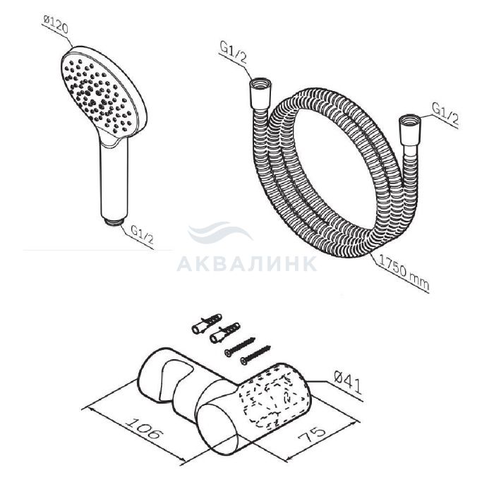 Комплект душевой AM.PM Like, лейка 3 режима d120мм, шланг 175см, держатель, черный F0118022