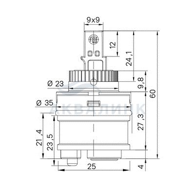Картридж керамический для смесителя, 35 мм, без ножек, с верхним уплотнителем, IDDIS, 999C35D1SM