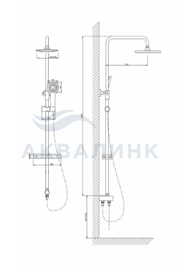 Комплект душевой VODA с тропическим душем, с полкой, хром VST1000-8