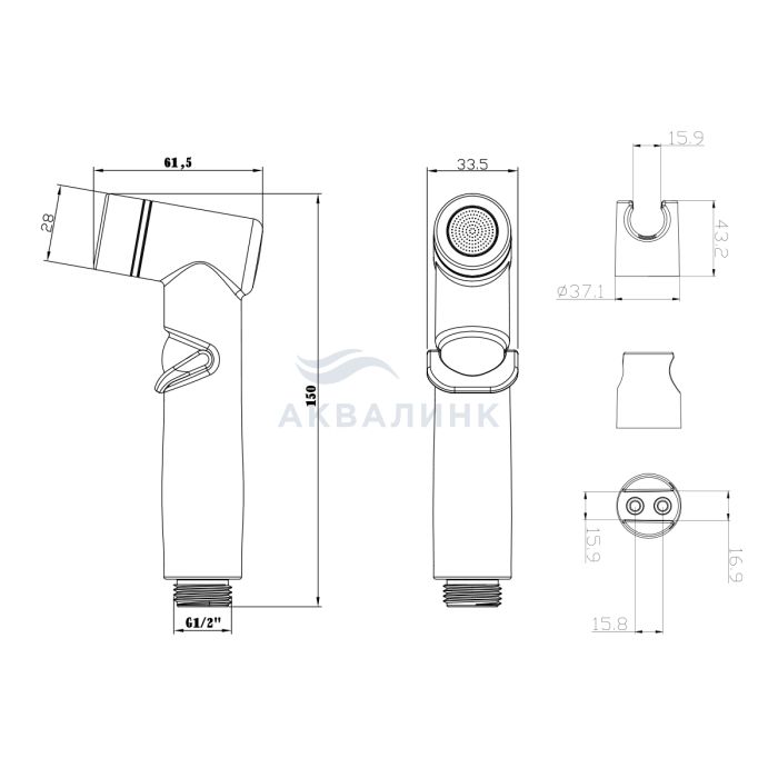 Комплект гигиенический LEMARK со шлангом и держателем, черный LM8088BL