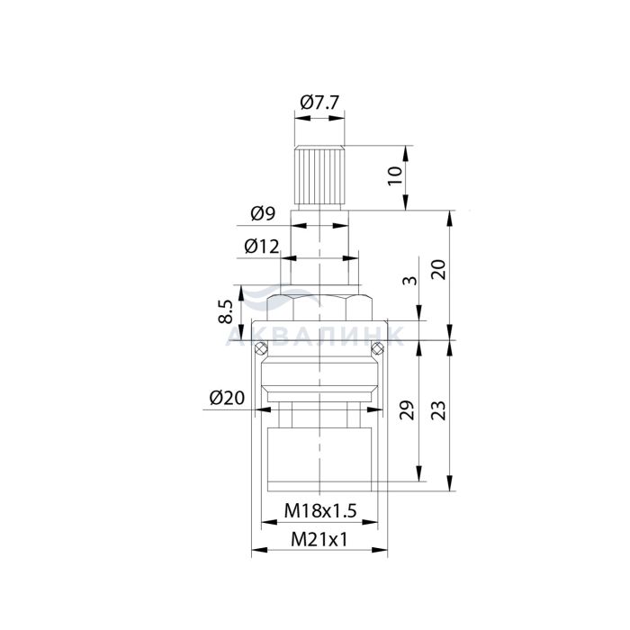 Кран-букса керамическая, 90°, 20 зубцов, M18x1,5, M21, h=53 мм, IDDIS, 998CR532SM