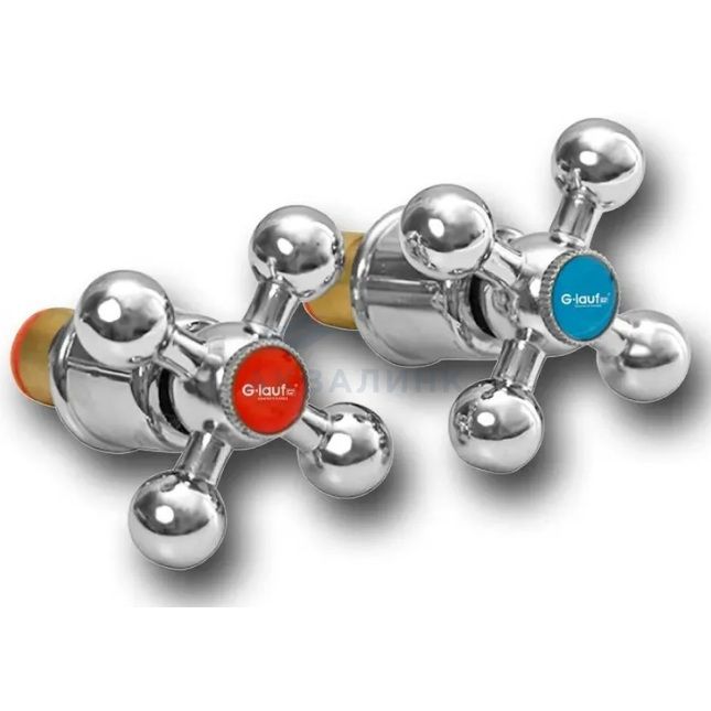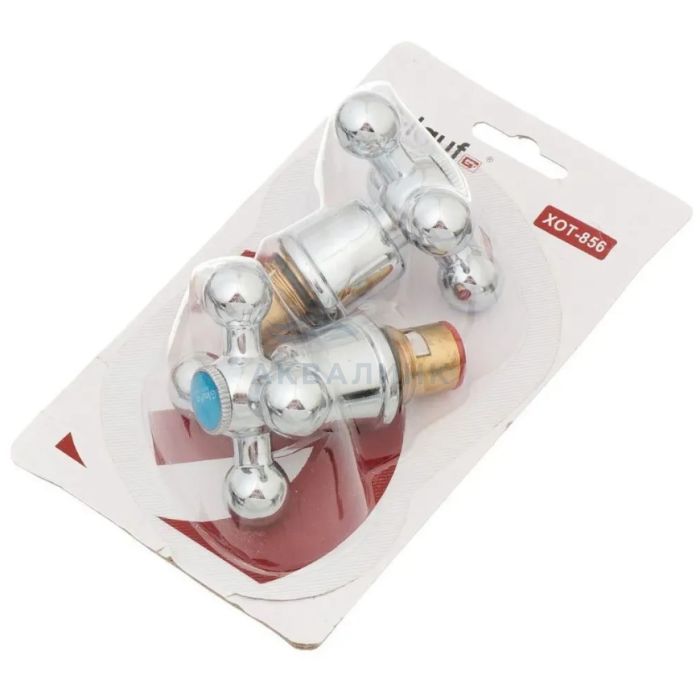 Кран-букса + маховик XOT-856 Комплект ручек с кран-буксами на блистере, Усиленные с керамическим сердечником, оборот 180°, резьба 1/2, 24 шлица для крестовых ручек