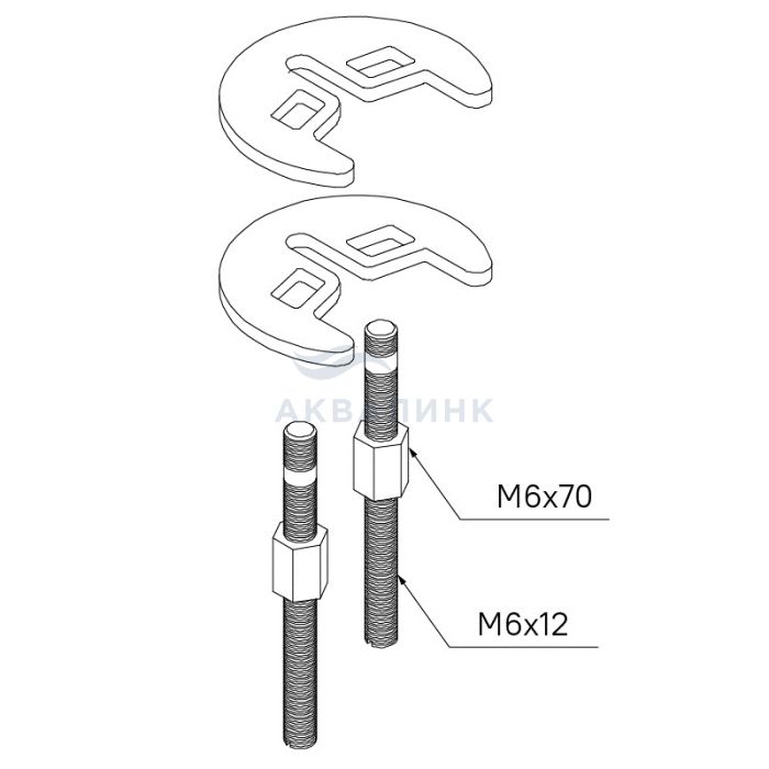 Крепление для смесителя, к-т, 2 шпильки, M6x70, IDDIS, 9842M670SM Комплект креплений с двумя шпильками размером М6 для вертикальной установки смесителя. Подойдет для установки смесителя для умывальника и кухни (определяется конструктивными особенностями самих смесителей). Крепления изготовлены из прочного металла, стойкого к коррозии. В комплекте две резьбовых шпильки размером М6 и длиной 70 мм, металлическая крепежная пластина, резиновая прокладка и две гайки.