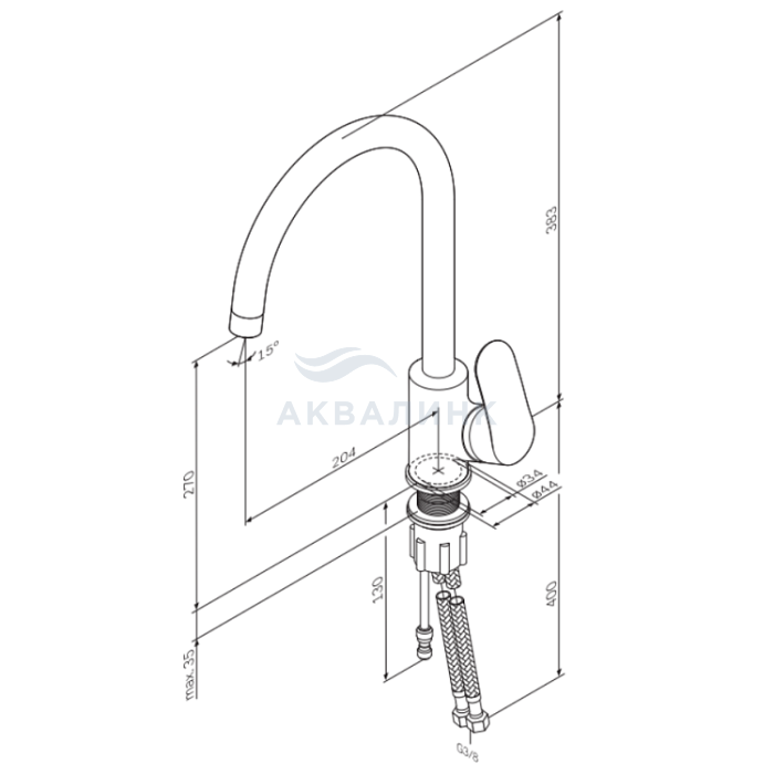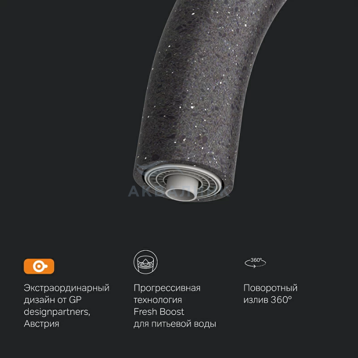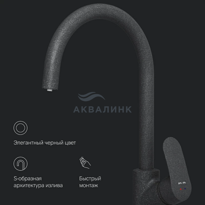 Смеситель для кухни AM.PM Like с каналом питьевой воды, черный камень F8007722