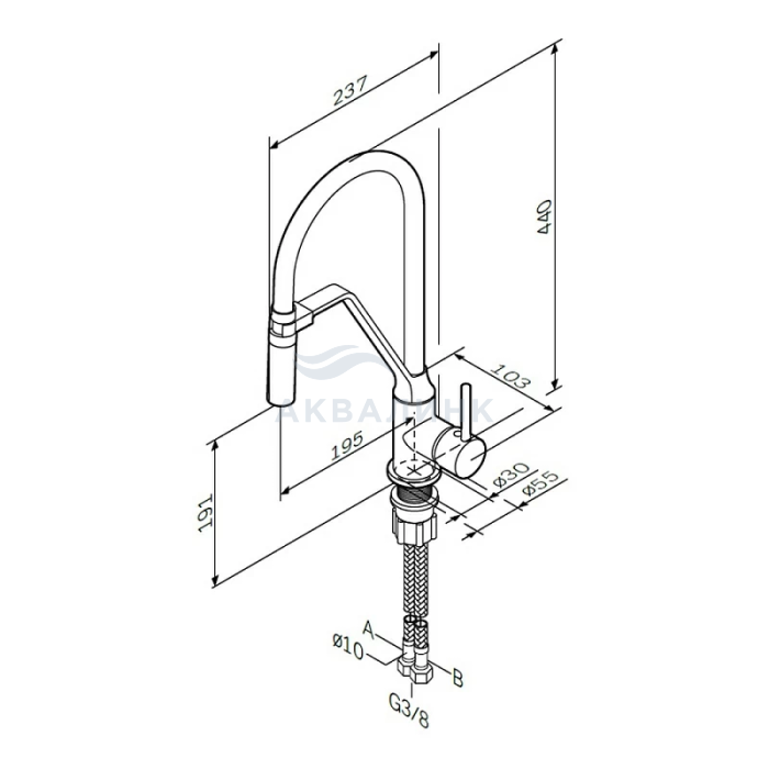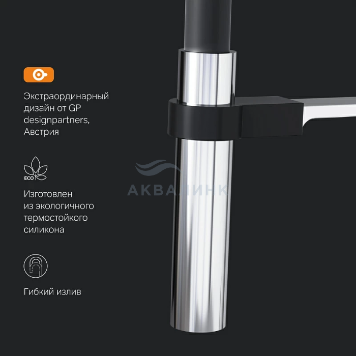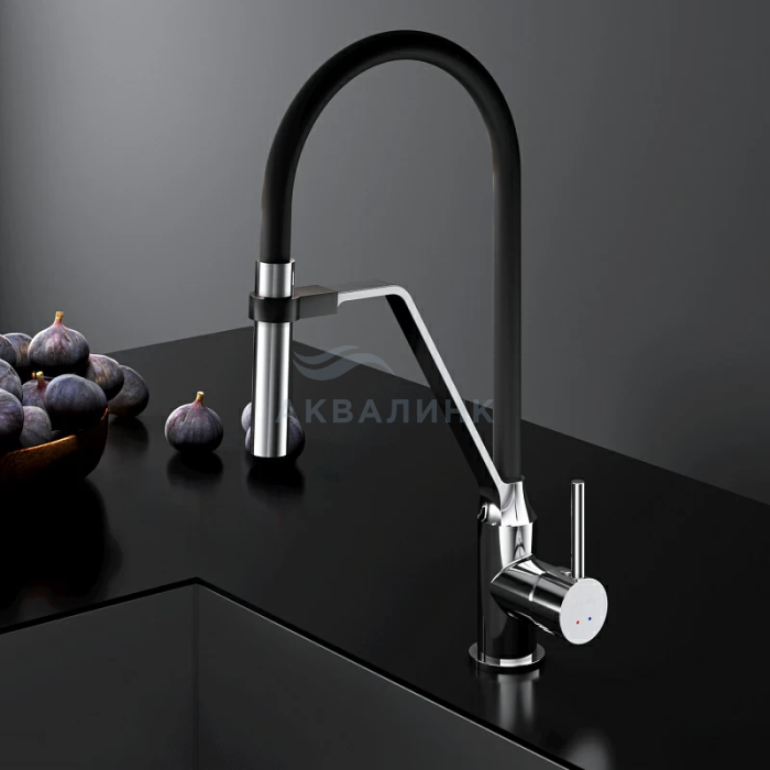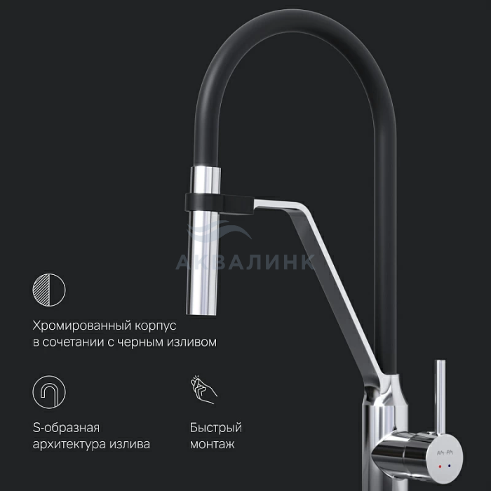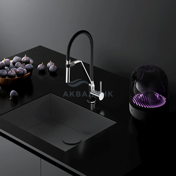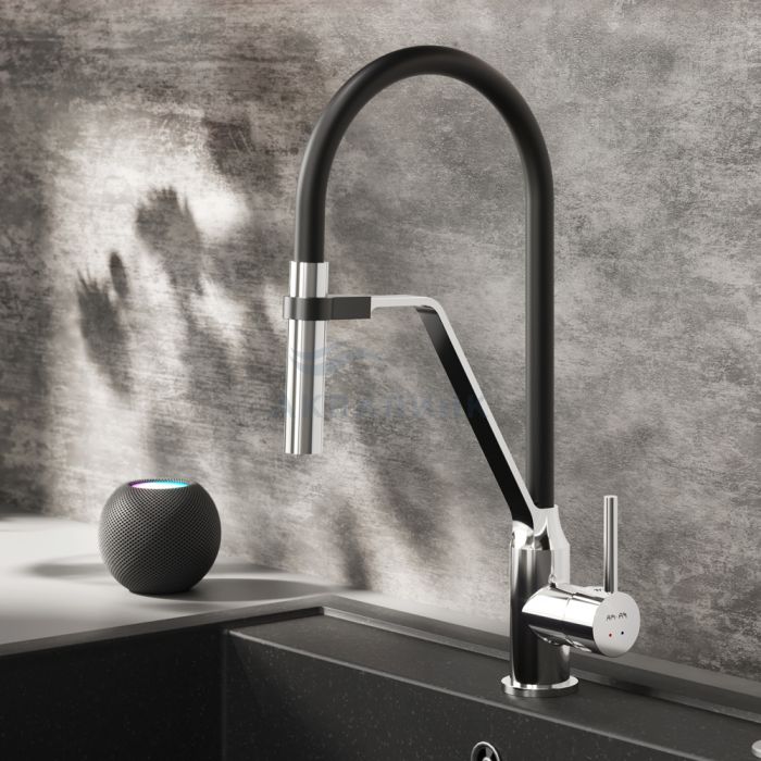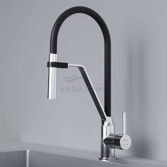 Смеситель для кухни AM.PM Like S с гибким изливом, хром/черный F8013000