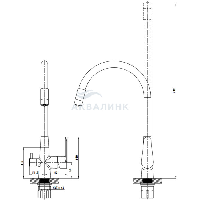 Смеситель для кухни ESKO Coral (Кораллы) с питьевым каналом, гибкий излив, черный CL03BTotal