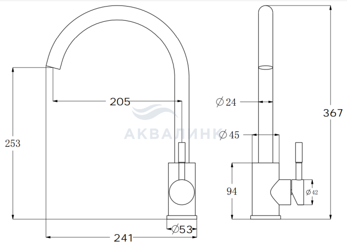 См-ль д/кухни, R-излив, Black, арт. K45 Black Корпус: нержавеющая сталь, марка SUS 304 (пищевая сталь), покрытие: гранит матовый черный. Излив: поворотный, нерж. сталь Картридж: универсальный ESKO, 35мм Комплектация: пьедестал, крепление "FastFix",гибкая подводка 40см.