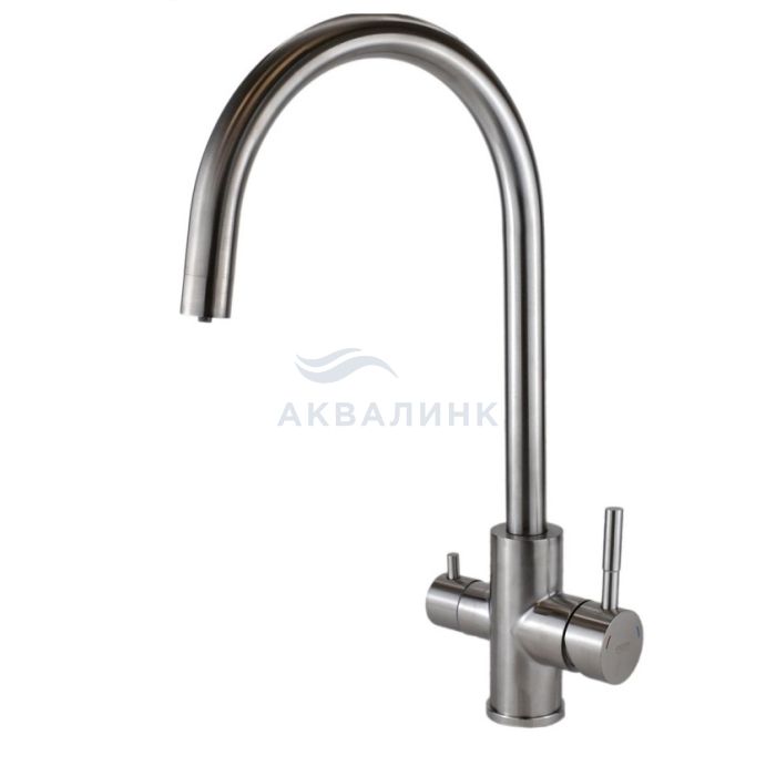 См-ль д/кухни, R-излив, нерж., с подключением к фильтру, арт. K22 Корпус: нержавеющая сталь, марка SUS 304 (пищевая сталь), аэратор с каналом для фильтрованной воды Излив: поворотный, нерж. сталь Картридж: универсальный ESKO, 35мм Комплектация: пьедестал(металл),ребро жесткости, крепление "FastFix",гибкая подводка 45см, шланг подключения к фильтру.