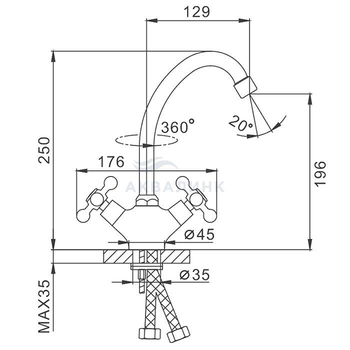 Особенности Керамическая кран-букса Frap с поворотом на 90° Аэратор Frap Поворотный излив В комплекте Гибкая подводка ½ - 30 см